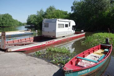 Pour nous éviter de faire un détour de 100 km, nous empruntons encore fois une " lancha " pour traverser la lagune ... petite balade agréable.