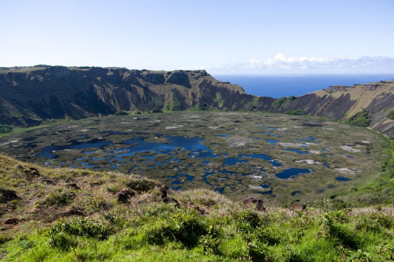 * Rano Raraku : Ce volcan impressionnant, correspond à la carrière de fabrication des moaï.