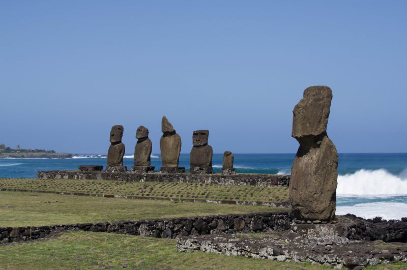 * Ahu Tongariki : L'une des images emblématique de l'île - 15 moaï qui dominent l’océan.