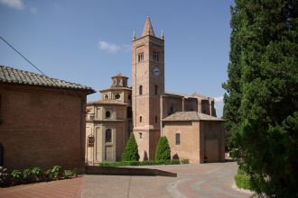 Accès uniquement à pied, nous laissons le camping-car et nous montons une petite colline érodée, sur laquelle au milieu des cyprès, se dissumule l'abbaye.