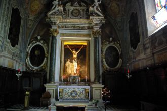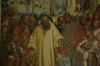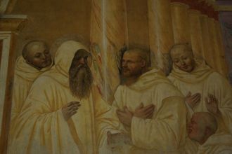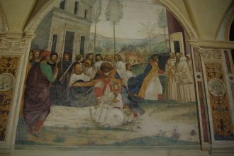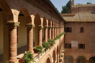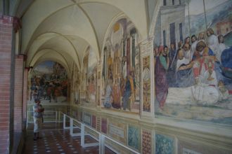 A l'intérieur, grand cloître décoré d'une superbe série de 36 fresques dédiées à Saint Benoît.